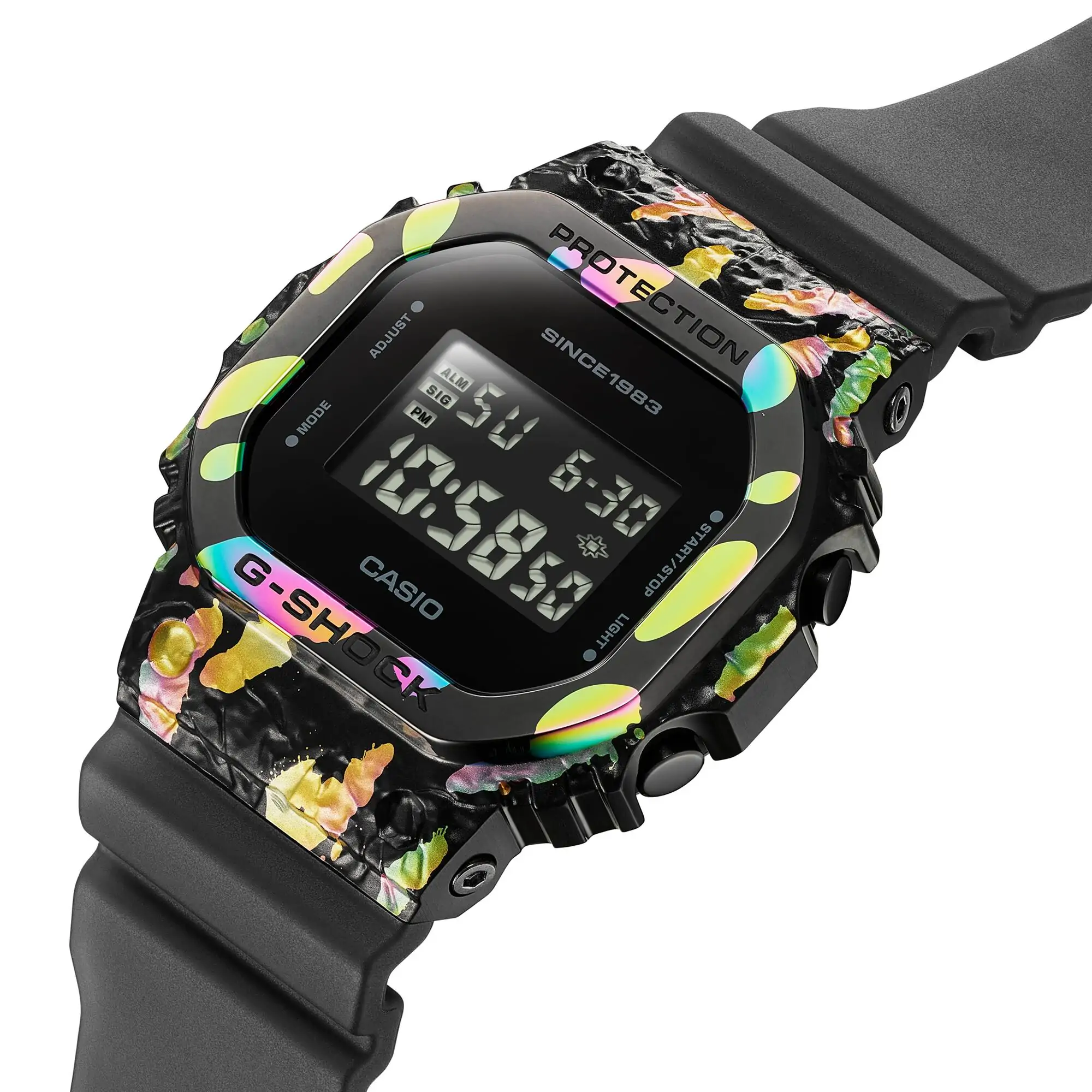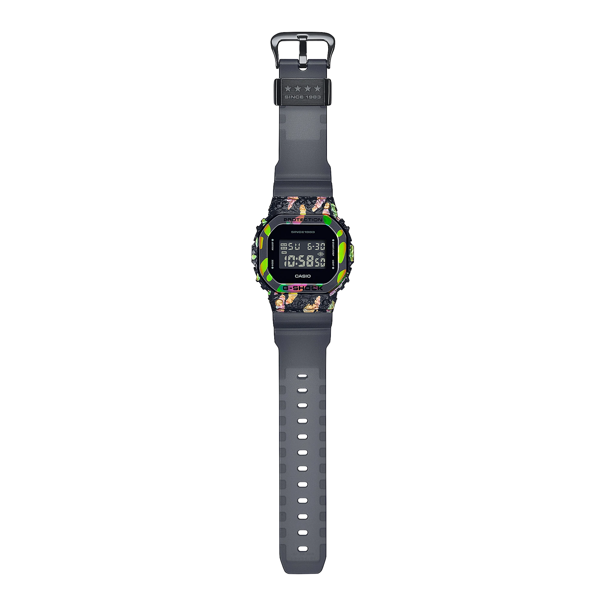 Корпусът е комбинация от неръждаема стомана и полимер, което прави часовникът елегантен и здрав, но лек.